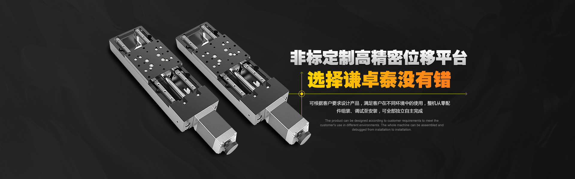 关于我们广州市谦卓泰自动化科技有限公司是一家致力于高精密位移平台、手动位移平台、可调位移平台、光学位移平台等位移平台产品的研发、生产和销售,是优秀的非标定制精密平台解决方案供应商,产品现已广泛应用于通信、交通、电力、冶金、工业、军事、医疗及消防等重要领域。公司可根据客户要求设计产品,满足客户在不同环境中的使用,整机从零配件、组装、调试至安装,公司可全部独立自主完成。